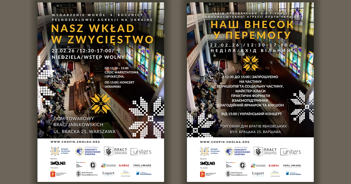 Z ogromnym wzruszeniem zapraszamy na pierwsze wydarzenie tegorocznej edycjiXVII Festiwalu „Koncerty Urodzinowe Chopina”pt. „Nasz wkład w zwycięstwo”Spotykamy się w wyjątkowym miejscu i w ważnym celu.Tuż przed 4.