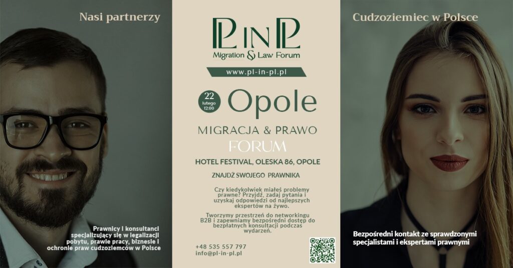 Z wielką przyjemnością zapraszamy na kameralne spotkanie branżowe PLinPL Migration & Law Forum, które odbędzie się 22 lutego 2026 r. w Opolu, Hotel Festival, ul. Oleska 86 o godz. 12-00 pod Patronatem Honorowym Prezydenta Miasta Opola Arkadiusza Wiśniewskiego, Polsko-Ukraińskiej Izby Gospodarczej oraz pod patronatem medialnym Radia Doxa i Radia Opole.